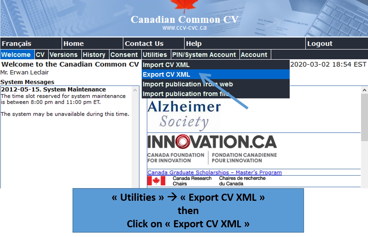 Step 2. Select the menu “Utilities” → ” Export CV XML “