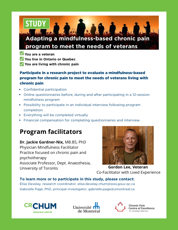 - Title: Co-construction of CALM-Pain, a trauma-informed mindfulness-based chronic pain management program for Veterans to improve quality of life: A pilot mixed methods study